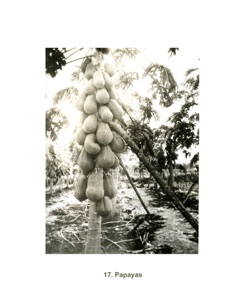 My mother, doña Lena, had a friend, Mrs. Tennyson, whose husband’s job was to supervise pineapple plantations. My mother was invited by Mrs. Tennyson to visit at her house in La Colombiana, and she took me along. I remember that we were taken for a ride in a car with a roof, and benches, that they called a “trolley.” Two huge laborers moved a lever up and down, to propel the car. They took us to the end of a plantation, where I saw for the first time, from 200 meters away, the virgin forest of the plain formed by the foothills of the Cordillera Central, to the north. There I was impressed by the immense, tall trees, many with epiphytes, and the scant vegetation below them, which tolerated less light. In these fields, workers toiled among the pineapples, but I was too young to notice in detail what they were doing.
